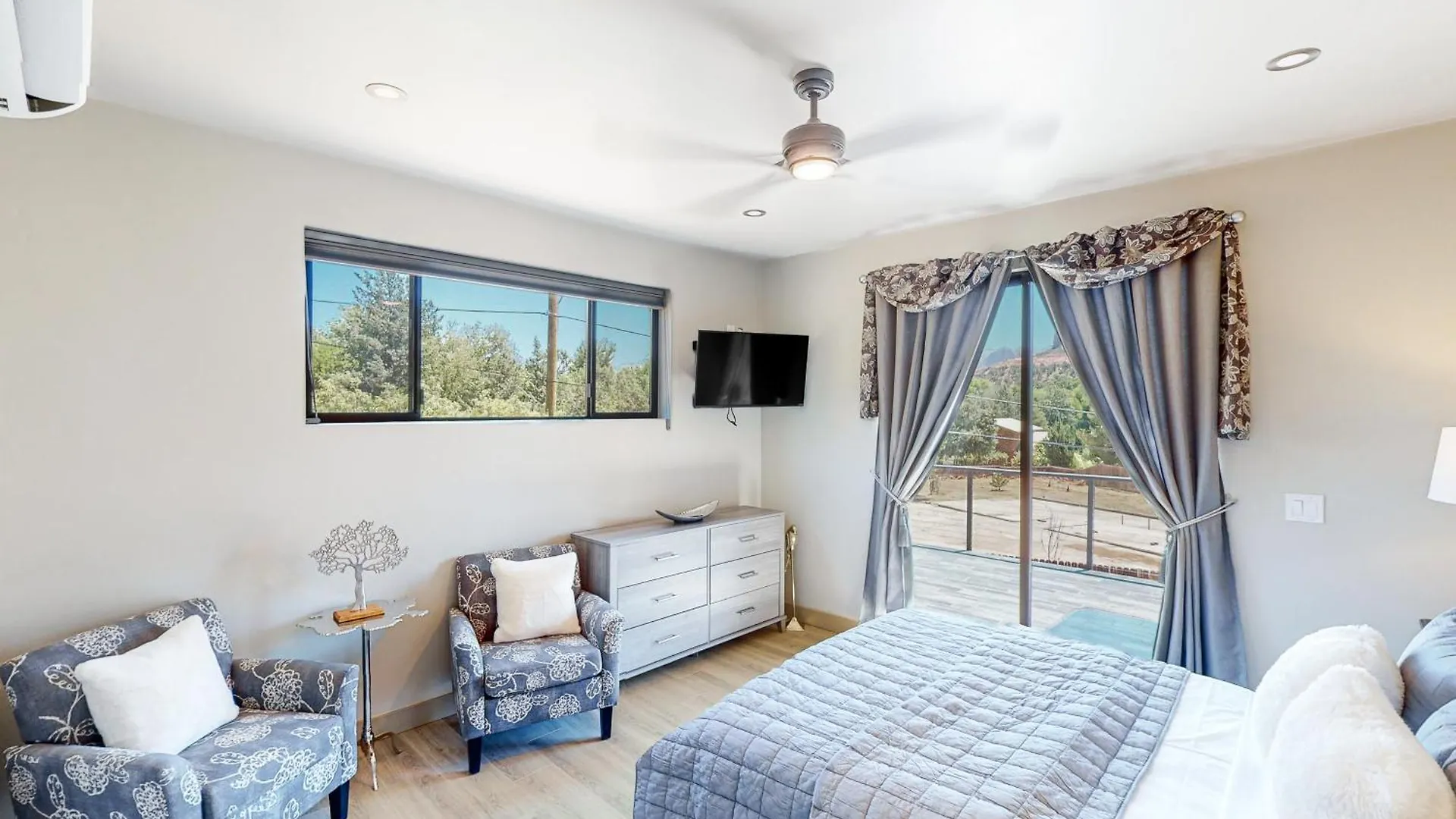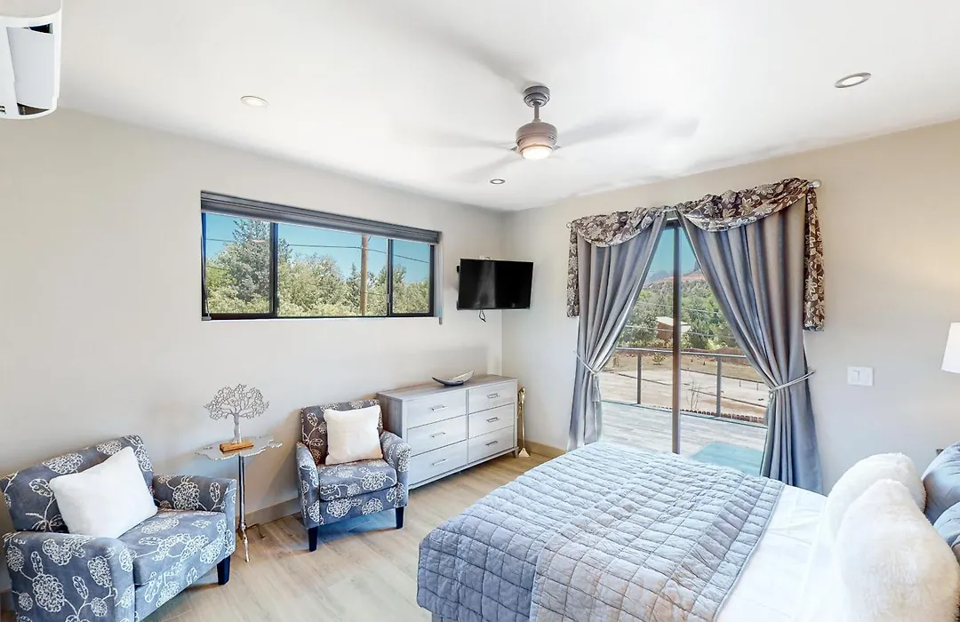 Comprenant un balcon, les chambres de Villa Moondance Manor de Sedona sont équipées d'Internet à haut débit et d'une TV multi-canal. Un équipement de repassage et une climatisation sont fournis pour le confort des clients.